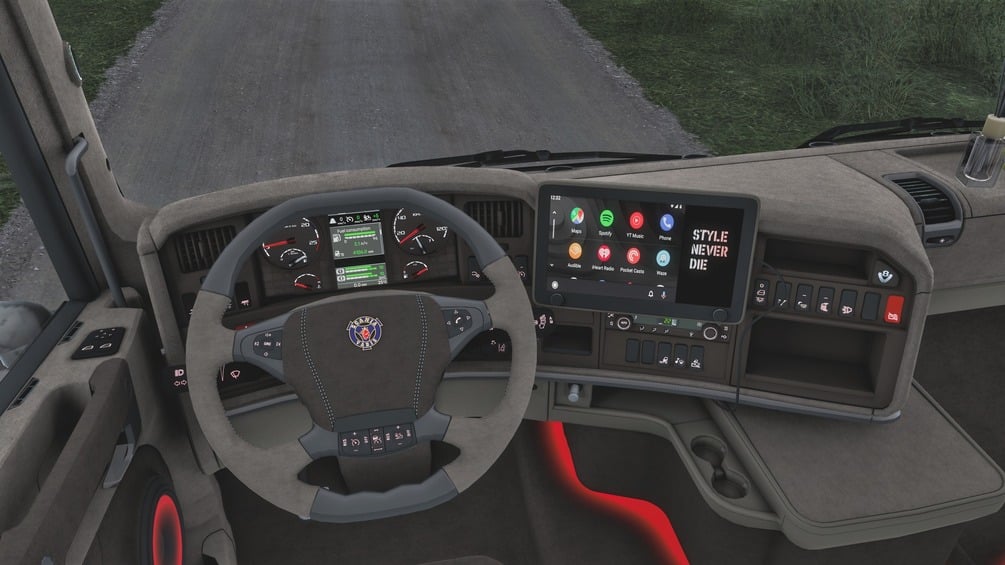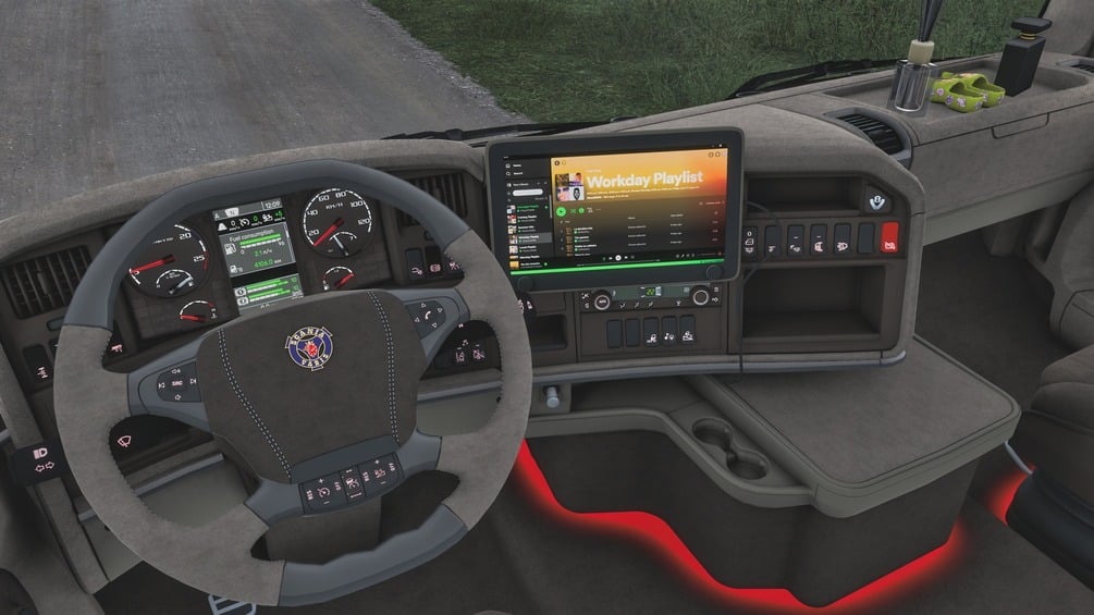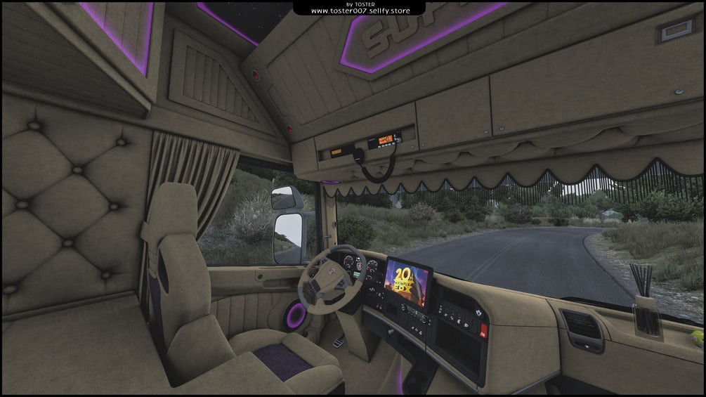 Full work interior for Scania by RJL. Full view from exterior, interior light, DLC Addons, Own slots.